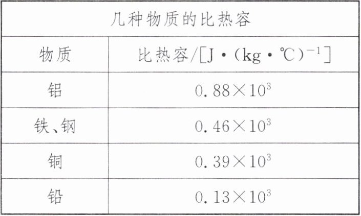 7. 某金属块质量为 $1.5kg$、温度为 $80^{\circ}C$,把它放在室外自然冷却,当放出 $6.6×10^{4}J$ 热量时,该金属块温度降低了 $50^{\circ}C$,该金属块的比热容是多少?可能是哪种金属?