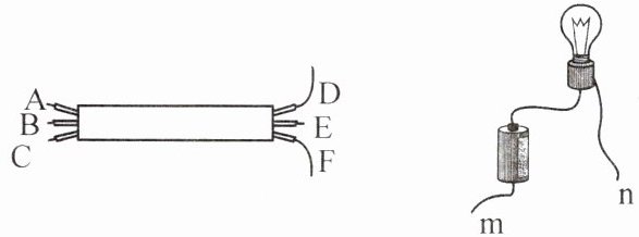 (3)若确定A、D线头为同一根导线的两端,连接A、B线头,将导线m连接在D线头上,当导线n连接F线头时小灯泡发光,由此可以确定C线头和