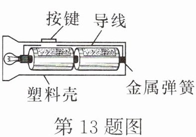 13. 如图所示是手电筒的构造示意图,电源为两节新干电池,其中干电池工作时将化学能转化为