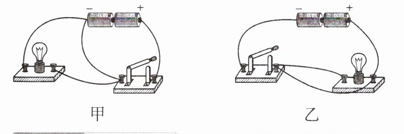 17. 图甲、乙中,各有一根导线接错而使小灯泡被短接,请把这根导线找出来,在上面打一个“×”。