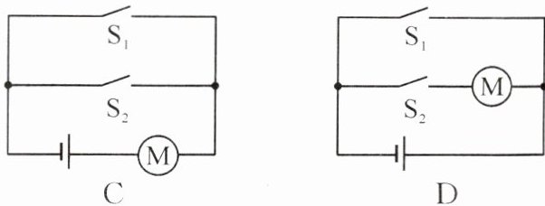 8. (2024·菏泽)为确保安全,某品牌电动车须拧动钥匙(相当于闭合开关 $ S_1 $)且按下按键(相当于闭合开关 $ S_2 $)才能启动。下列电路设计符合要求的是(