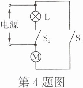 4. 如图是电冰箱的简化电路图,M 是电冰箱压缩机内的电动机,L 是电冰箱内的照明灯。下列判断正确的是(
