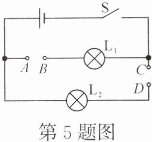 5. 如图所示,$L_{1}$、$L_{2}$是两个相同的小灯泡,A、B、C、D 是四个接线柱,若用导线将 A、B 和 C、D 分别连接起来,则 $L_{1}$、$L_{2}$是