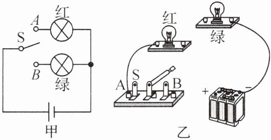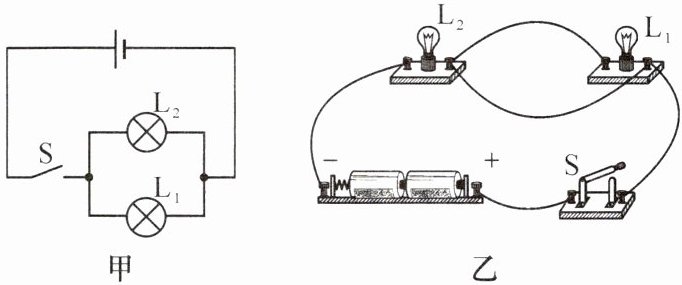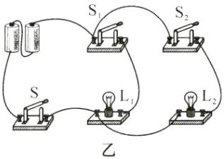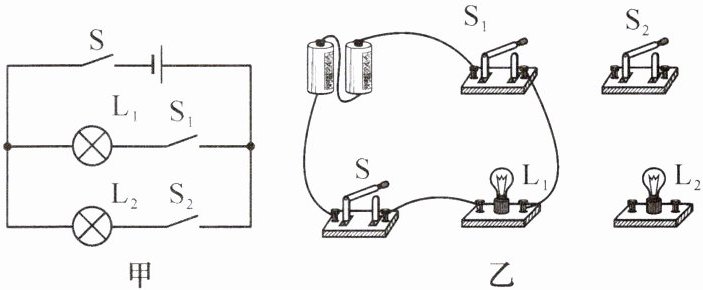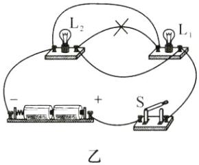 15. 图乙是根据图甲连接的实物电路,其中有一根导线连接是错误的,请把这根导线找出来,在上面画一个“×”,然后画出正确的连线。