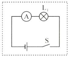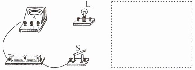 6. 【教材习题改编】在如图所示的电路中,用电流表测量小灯泡中的电流,估计小灯泡中的电流大约为 $0.7A$,请用笔画线代替导线将实物电路连接完整并在虚线框中画出正确的电路图。