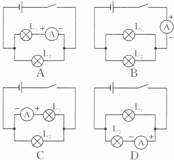 7. 下列电路中闭合开关后能够直接测出通过灯 $L_{1}$ 的电流的是(