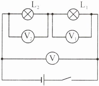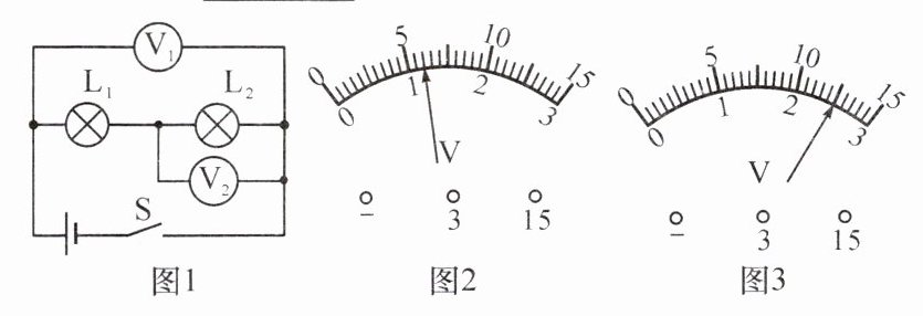 $V$。【变式】 若开关闭合后,$V_{1}$和$V_{2}$的示数分别如图2和图3所示。则小灯泡$L_{1}$两端的电压是