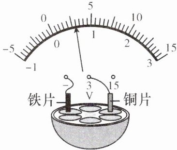 (填“铁片”或“铜片”)。(3) 为获得更高的电压,可以将多个水果电池