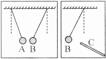 1. (2024·合肥庐阳区期末)A、B是两个轻质带电泡沫小球,C是用丝绸摩擦过的玻璃棒。A、B、C三者之间相互作用时的场景如图所示。由此可判断:小球A带
