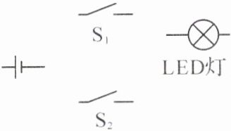 8. (2024·亳州谯城区期末)有一款感应照明门把手,当夜间有人触摸把手时,LED灯亮,白天LED灯不亮。整个电路中有电源、感应开关$S_{1}$、光敏开关$S_{2}$(白天断开,晚上闭合),请在图中画出可以实现该功能的电路的连接方式。