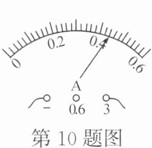 10. (2024·安庆期末)如图所示,在“练习使用电流表”的实验中,某同学发现电流表$0~3A$的量程刻度值标示不清,根据你对电流表的了解,电流表的正确读数应是(