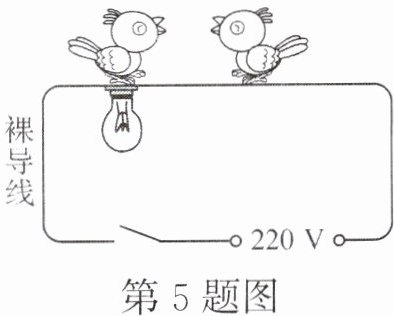 5. (2024·芜湖二模)如图卡通画中,电路一旦接通,两只小鸟中右边的那只相对安全,这是因为
