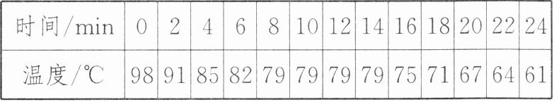 2. 某固态物质加热后成了液态,随后停止加热,并记录温度与时间的变化关系如下表。请你分析实验数据并回答: