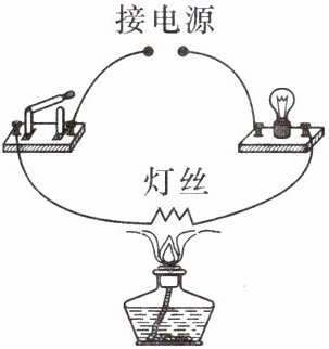 3. 如图,将白炽灯灯丝接入电路,闭合开关后小灯泡发光,通过白炽灯灯丝和小灯泡的电流