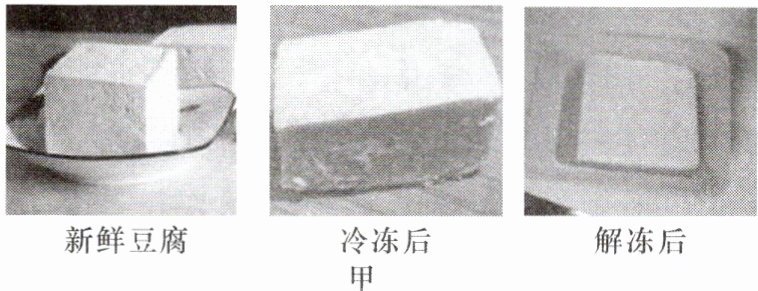 (1)小芳小组制作“冻豆腐”,制作过程如图甲所示。他们发现,新鲜豆腐冷冻后体积变大,原因是豆腐里面的水