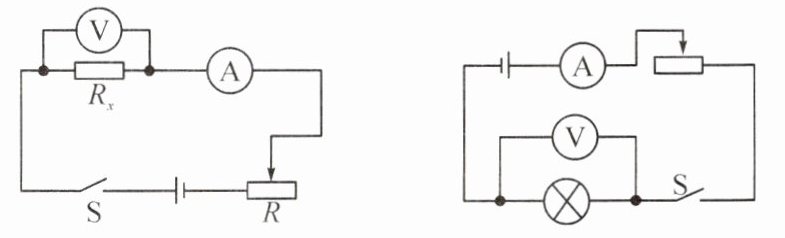 4. 如图,小罗同学在对比“测量未知电阻阻值”和“研究小灯泡电阻”这两个实验时,下列说法中不正确的是( )