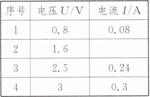 $\Omega$;(结果保留一位小数)③ 换用规格为“$20\ \Omega\ \ 1\ A$”的滑动变阻器,不能完成表格中第
