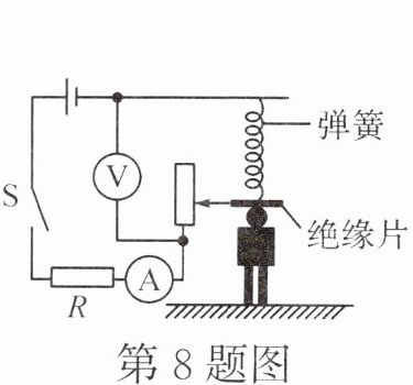 8. (2024·乐山)小嘉同学设计了一款身高测量仪,其工作原理如图所示。已知电压表、电流表示数分别为 U、I,电压表、电流表示数变化量分别为 $ \Delta U $、$ \Delta I $,则下列说法正确的是 (