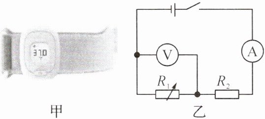 14. (2024·蚌埠蚌山区二模)如图甲为某穿戴式儿童电子温度计,其工作原理如图乙所示,电源电压恒定,$ R_{1} $ 为热敏电阻,其阻值随温度的升高而减小,$ R_{2} $ 为定值电阻。闭合开关,当温度升高时,下列分析正确的是 (