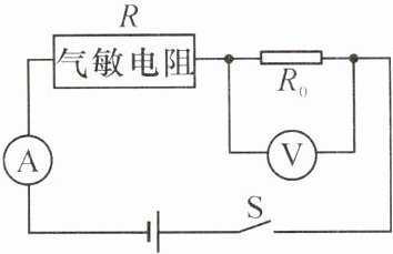 12. (2024·阜阳期末)如图,电源电压恒定不变,$ R_{0} $ 为定值电阻,R 为气敏电阻。R 的阻值随天然气浓度的增大而减小,则天然气 (
