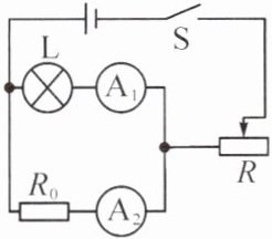 (1)闭合开关$S$,调节滑动变阻器的滑片,使电流表$A_{2}$的示数为