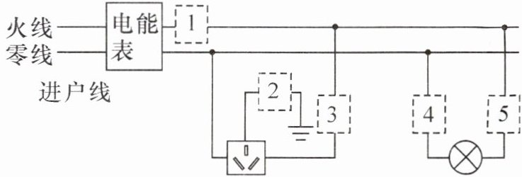 10. 开关是电路的重要元件,既可确保安全用电,又能方便控制电路。学校的 STEM 课堂上,小科在家庭电路图中设置了五处开关(如图所示)。小江觉得该电路设计不合理,因为有几处开关必须处于常闭状态,所以无须设置,这几处开关是(