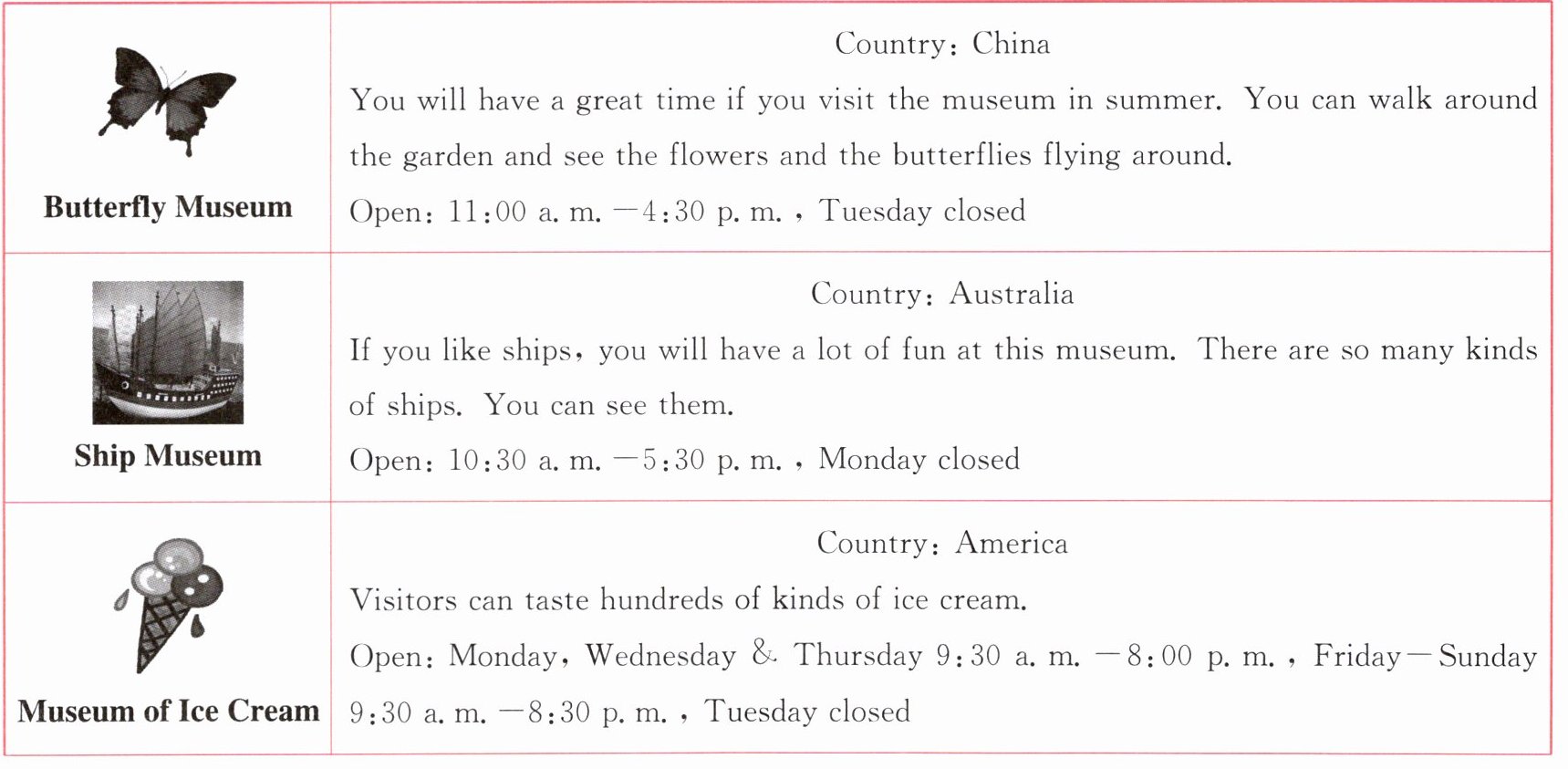 )1. When is the best time to visit the Butterfly Museum?A. In December.