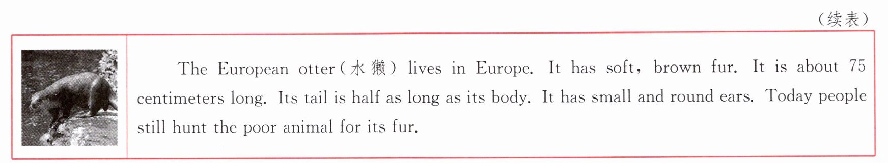 )2. What can we know from the material?A. People begin to protect the European otter.