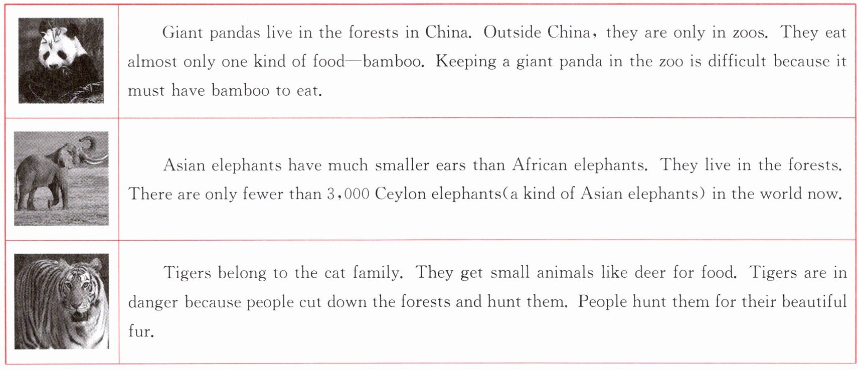 )3. What's the best title for the material?A. Animals in danger