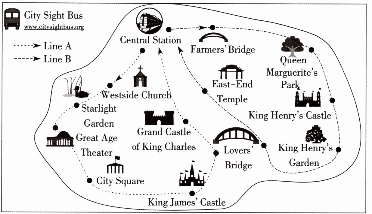 Buses for both lines(线路) leave every hour from Central Station.
