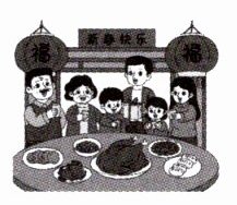 People usually spend the first day of the Chinese New Year with their family members at home. They usually have dumplings or niangao as the first meal of the Chinese New Year. After breakfast, little kids put on new clothes and give New Year greetings to their relatives. Both the kids and unmarried adults may receive red envelopes(信封) with money from seniors in the family.