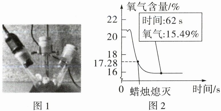 10. (中考新考法·数字化实验)蜡烛在图1所示密闭装置内燃烧至熄灭,利用数字传感器测得该过程中瓶内氧气含量的变化如图2所示。下列说法正确的是 (