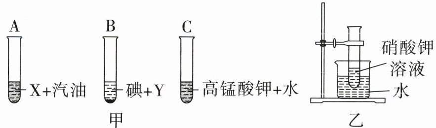 (1)甲实验中试管A和B可以探究溶剂种类对物质溶解性的影响,则X和Y分别为