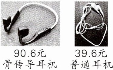 6. 下面左图是一款新型骨传导蓝牙耳机,采用了骨传导技术,通过人的骨骼传递声波。李叔叔带了300元钱,买2副骨传导耳机后,还能买几副普通耳机?