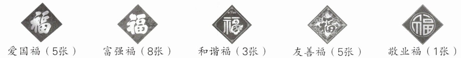 爱国福(5张) 富强福(8张) 和谐福(3张) 友善福(5张) 敬业福(1张)