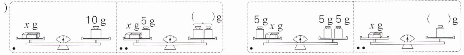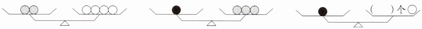 4. 根据下面第一、二幅图所表示的等量关系,判断第三幅图中的括号里应该填几。