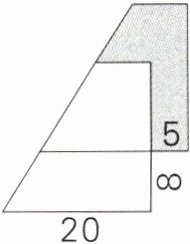 (20-5+20)×8÷2=140(dm²) [解析]如右图,将各部分标上序号,分析各部分的面积关系可知,S₁+S₂=S₂+S₃,故S₁=S₃,③是一个直角梯形,上底为20-5=15(dm),下底为20dm,高为8dm,直接利用梯形的面积公式求③的面积,从而得到①的面积。