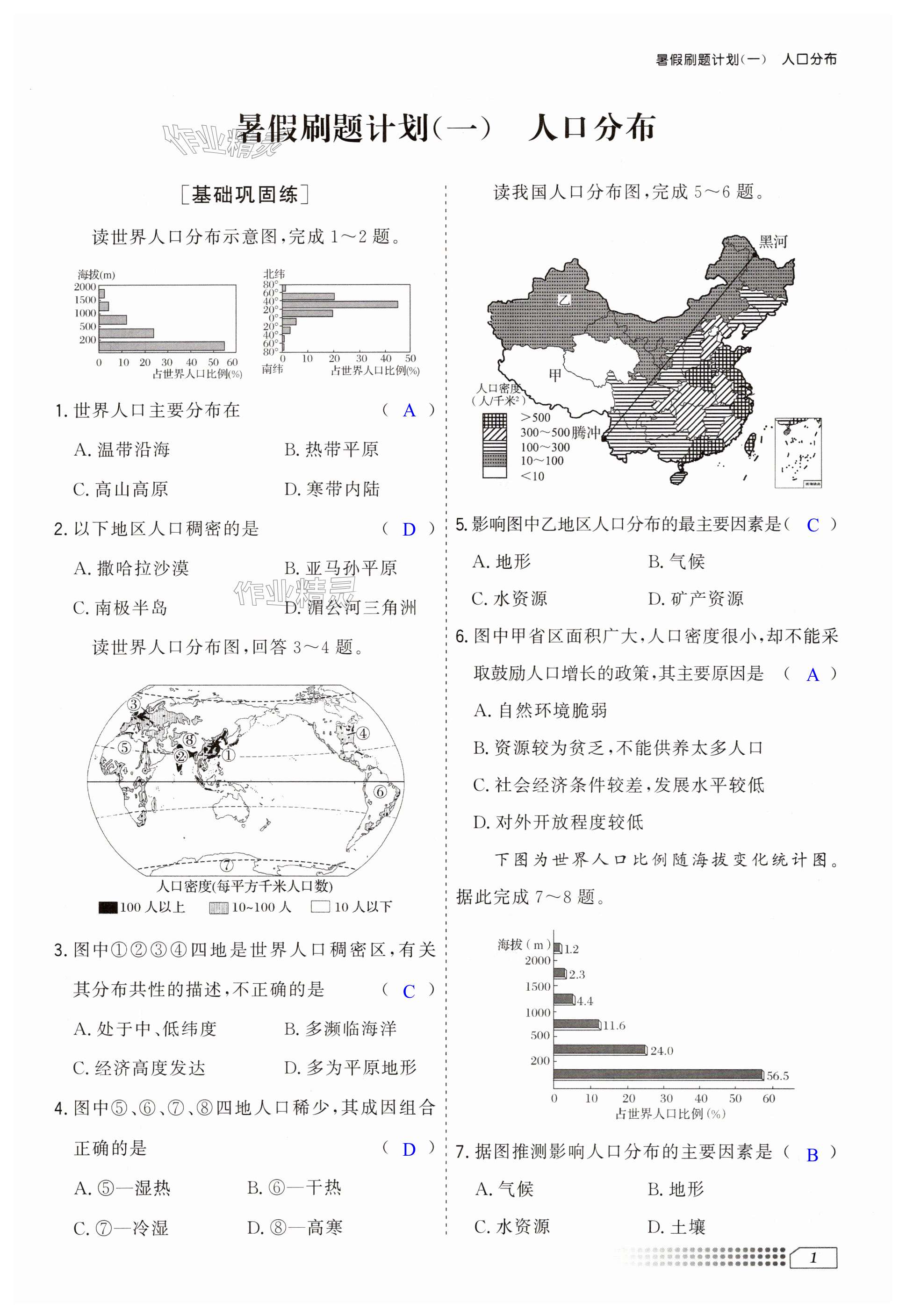 注:目前有些书本章节名称可能整理的还不是很完善,但都是按照顺序排列的,请同学们按照顺序仔细查找。练习册2025年暑假刷题计划高一地理答案主要是用来给同学们做完题方便对答案用的,请勿直接抄袭。
