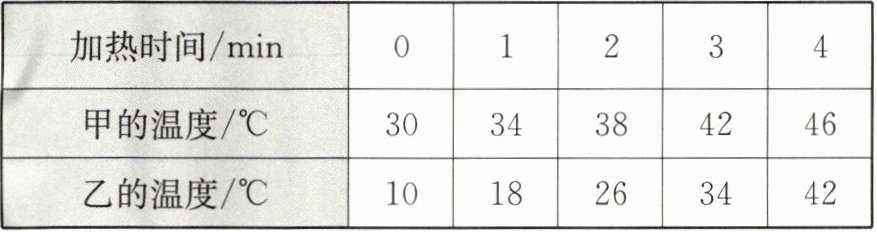 |乙的温度/℃|10|18|26|34|42|