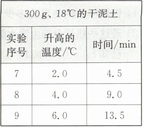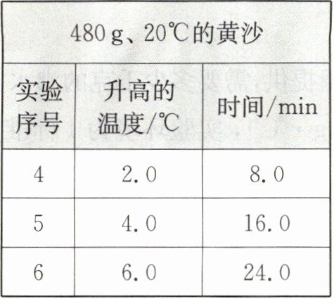 |实验序号|升高的温度/℃|时间/min|实验序号|升高的温度/℃|时间/min|实验序号|升高的温度/℃|时间/min|