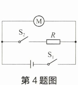 4. 如图所示为某电吹风的电路图,其中$R$是发热电阻丝,$M$是电动机。当使用冷风挡时,只有电动机工作;使用热风挡时,发热电阻丝和电动机同时工作。则(