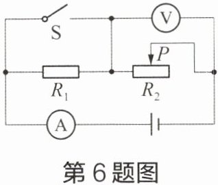 6. 在如图所示的电路中,电源电压保持不变。现对电路分别进行下列操作:①将滑动变阻器滑片$P$向右移;②用电阻$R_{3}(R_{3}<R_{1})$替换电阻R_{1};③闭合开关$S$。其中能使电流表与电压表示数均变大的操作有(