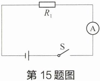 15. 在如图所示的电路中,电源电压保持不变,电阻$R_{1}的阻值为10$Ω,闭合开关$S$,电流表的示数为$0.9$A。