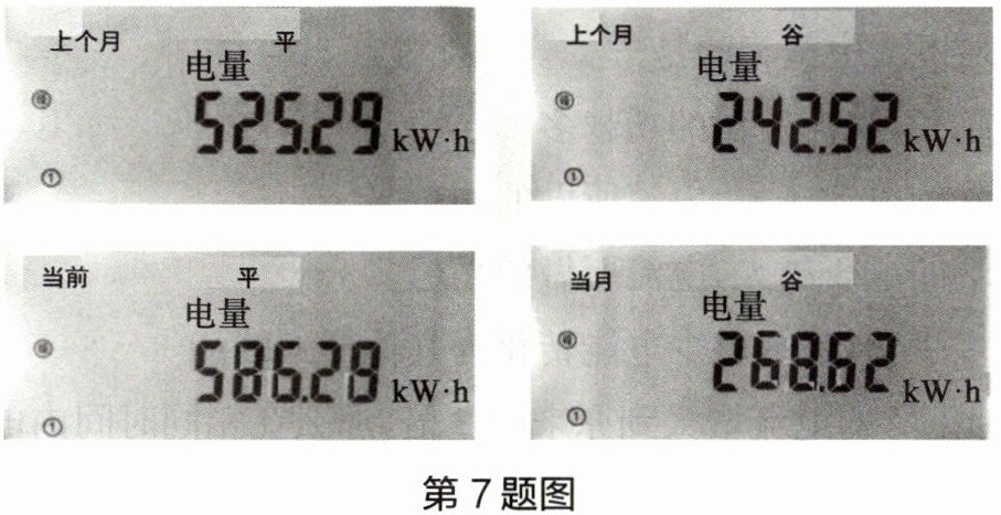 7 目前上海居民生活用电实行的是“分时电价”,每天 6:00~22:00 为“平时”,电价较高;22:00~次日 6:00 为“谷时”,电价较低。某家庭所用的智能电能表液晶屏幕采用循环显示方式,以显示不同的示数。部分示数如图所示。