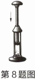8 如图所示,活塞迅速向下压的过程中,关于筒内的气体,下列说法中错误的是(