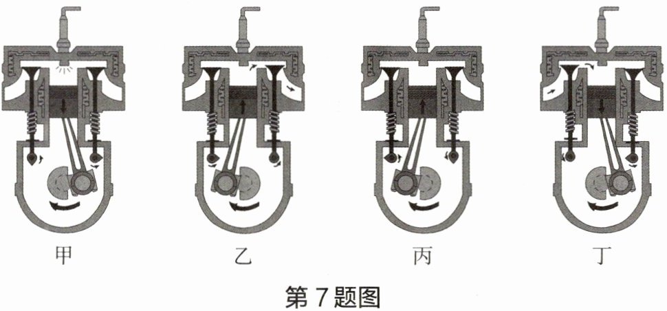 D.该汽油机一个工作循环的四个冲程正确的顺序是丁、丙、乙、甲