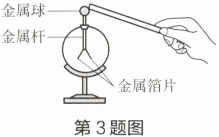 3 如图所示,用带电体接触验电器的金属球(图中手与带电体之间绝缘)。下列说法中正确的是(