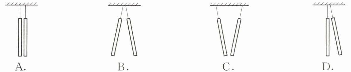 4 小明做了一个实验:取两根相同的塑料吸管,分别用细线系住吸管一端,再将两吸管另一端同时在自己的头发上摩擦,然后相互靠近悬挂起来。他观察到的现象是(