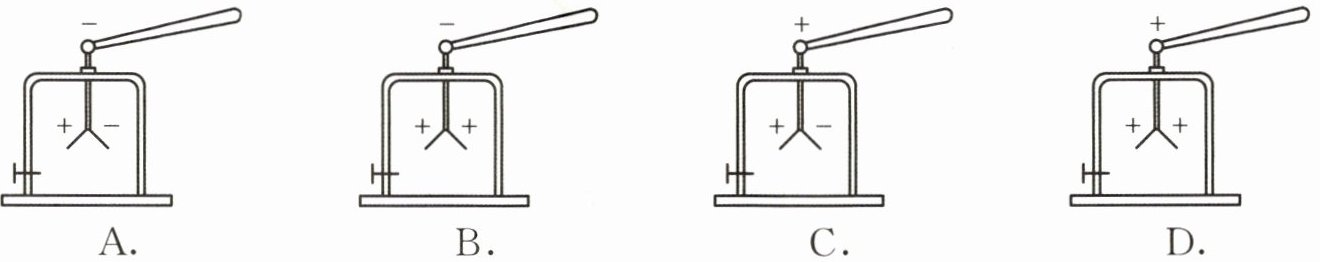 3 用丝绸摩擦过的玻璃棒接触验电器,下列示意图中,能正确表示玻璃棒和验电器金属箔片带电情况的是(