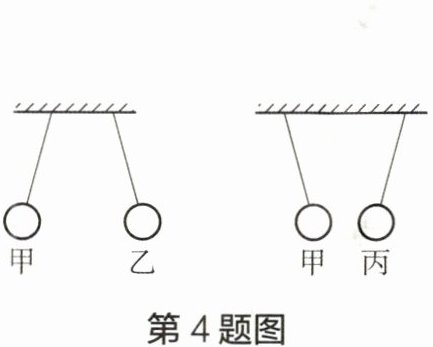 4 如图所示,轻质小球甲、乙相互排斥,甲、丙相互吸引。若已知甲带正电,则下列说法中正确的是(